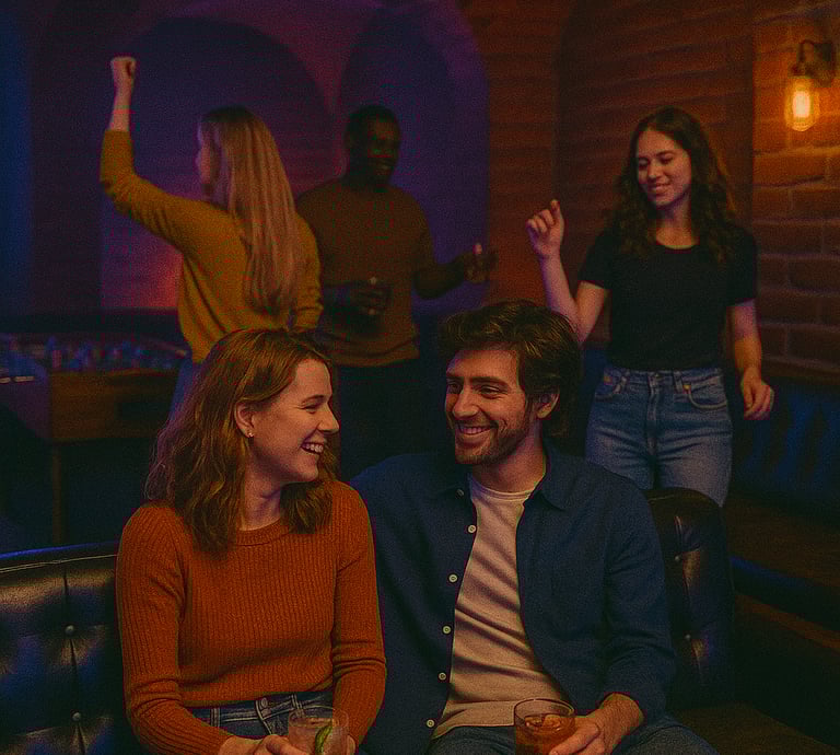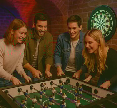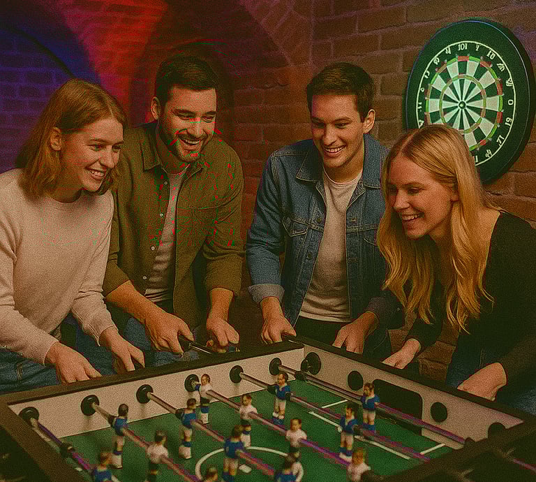 Planujesz kameralne spotkanie z przyjaciółmi w nietuzinkowym miejscu? Nasz lokal oferuje komfortową przestrzeń, w której możecie wspólnie spędzić czas, pograć w piłkarzyki, rzutki czy kosza, napić się w strefie barowej i cieszyć się muzyką w tle. To świetna opcja na wieczory pełne rozmów i dobrej zabawy.